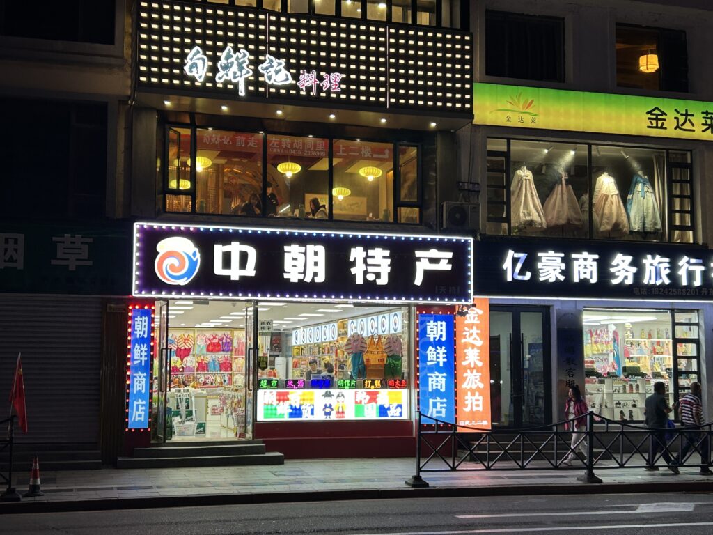 歩いていると朝鮮料理屋、中朝貿易の代理店のような店や朝鮮物品店が目立つ。