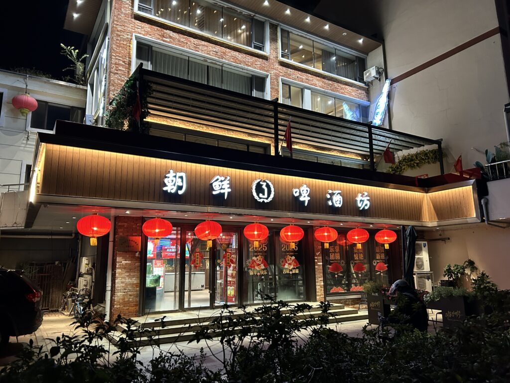 橋から1km程のところに北朝鮮ビアホールがあるらしい、という情報を見つけたので夕飯がてら行ってみる。