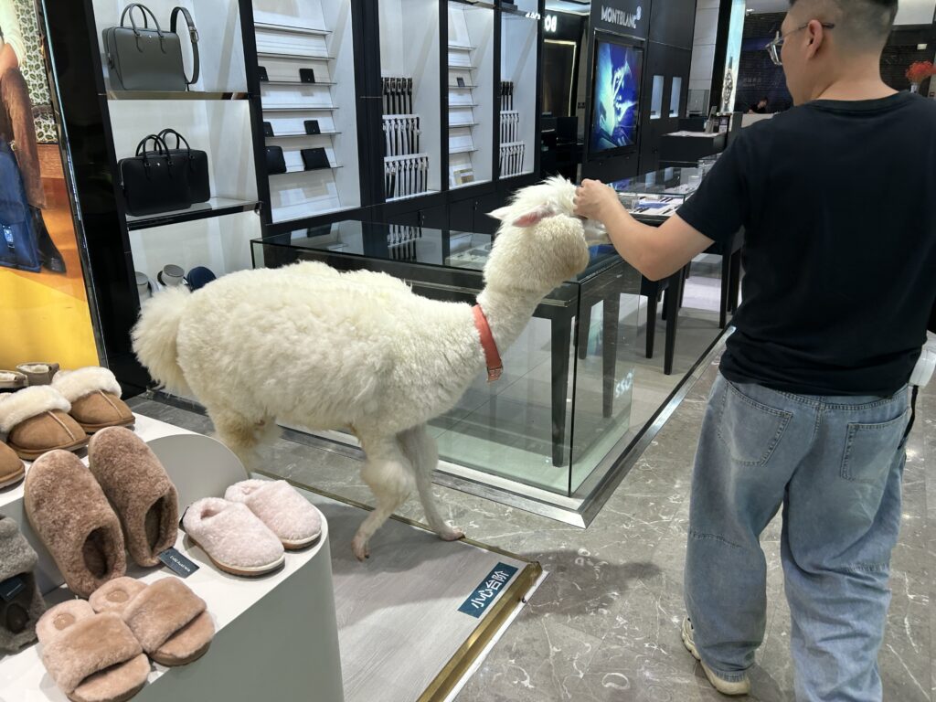 店内には何故かアルパカがいた。何でもありだ、中国。
