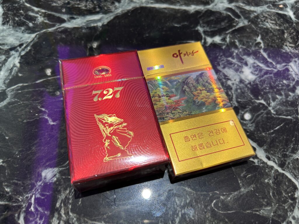 タバコはタール重めで、喉にズンとくる。 (※ちなみに北朝鮮製のタバコは外為法で持ち込みが禁止されている。)