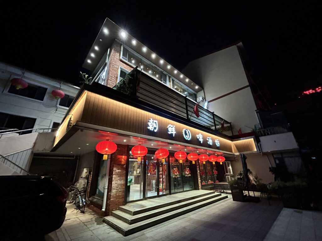 GoogleMapでは鴻運焼烤という潰れたお店になっているが、 百度地図等の中国製地図アプリで「朝鲜3啤酒坊」と入力するとしっかりサジェストされる。